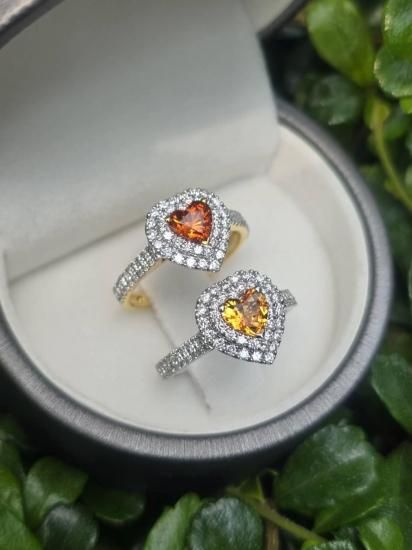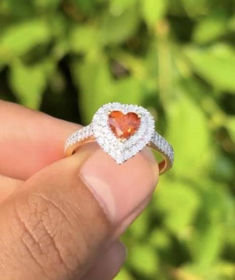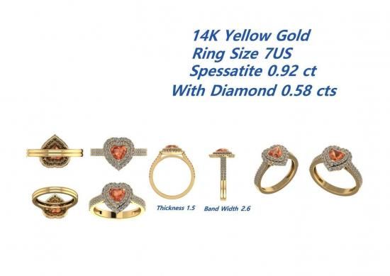 14Kイエローゴールドのスぺサルティンガーネット&ラボグロウンダイヤモンドリングです。